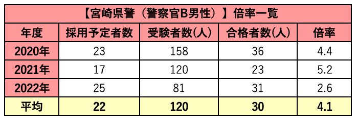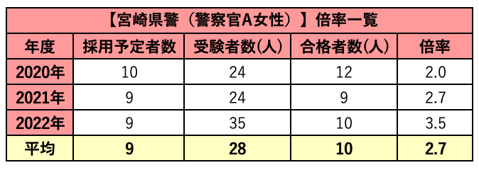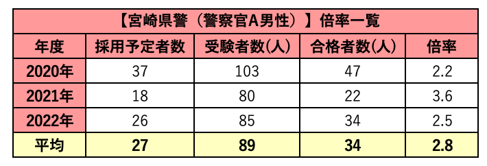 このように宮崎県警の採用試験の倍率減少傾向にあります!
