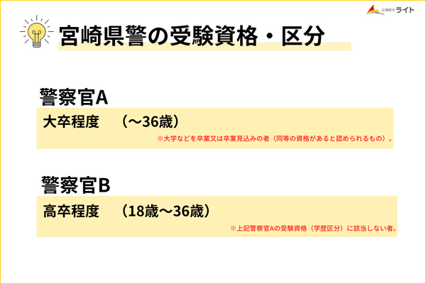 宮崎県警の試験区分A区分・B区分に分かれています。