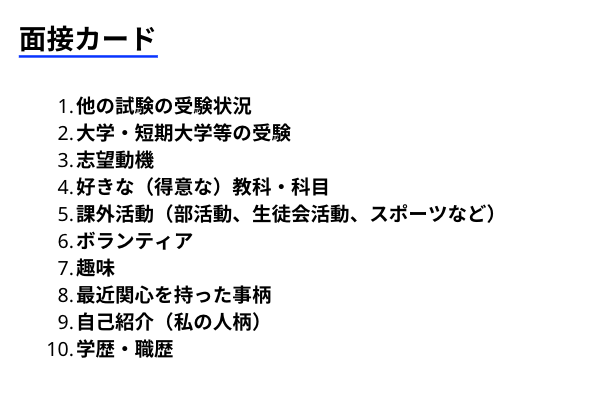 面接カードとは、面接の際に使用する簡単な質問シートのようなものです。