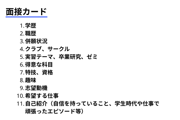 面接カードとは、面接の際に使用する簡単な質問シートのようなものです。