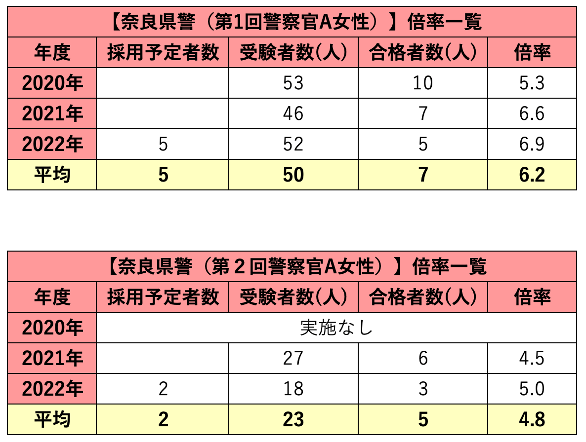 奈良県警の採用試験倍率:警察官A(女性)