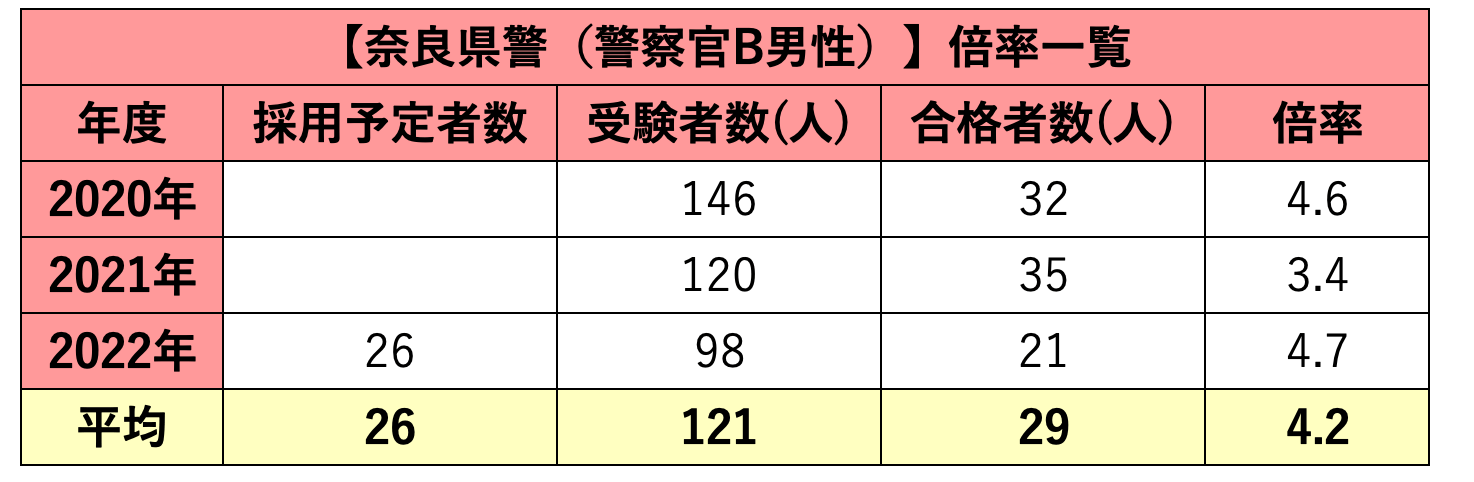奈良県警の採用試験倍率:警察官B(男性)