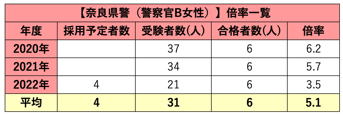 奈良県警の採用試験倍率:警察官B(女性)