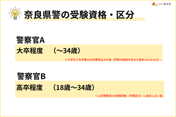 奈良県警の試験区分はA区分・B区分に分かれています。