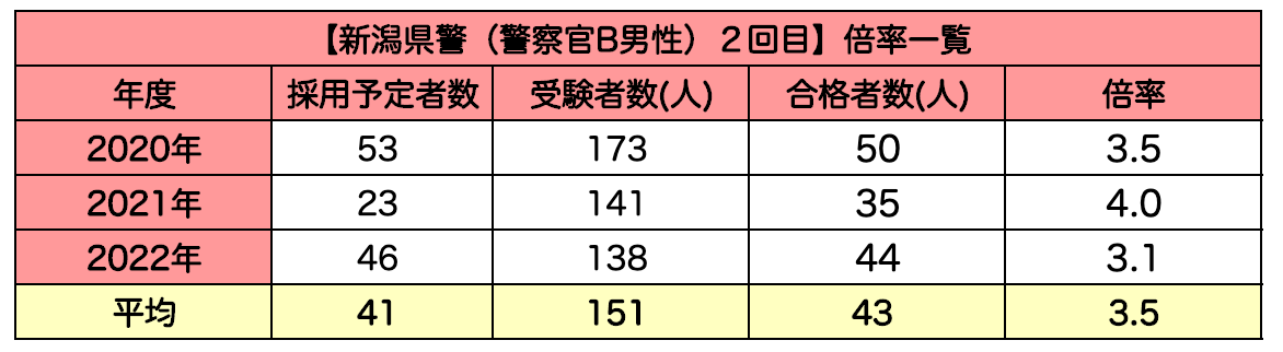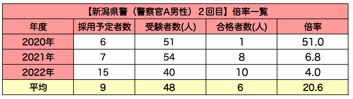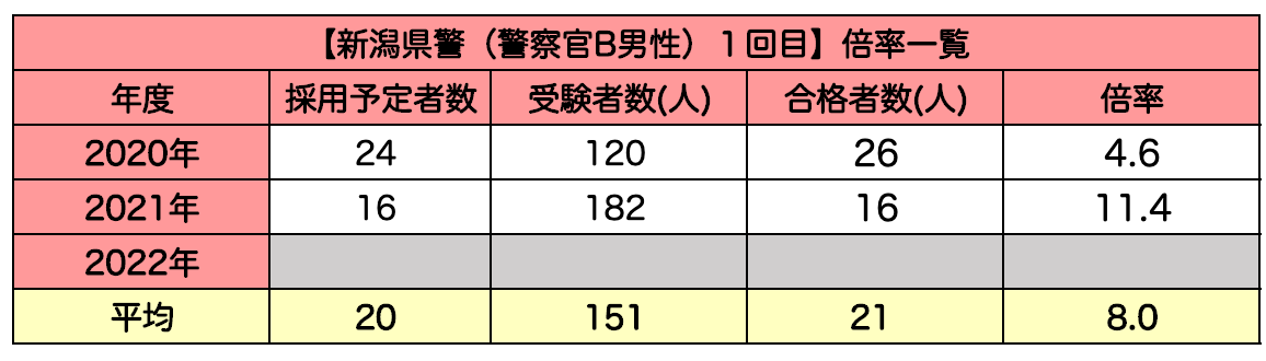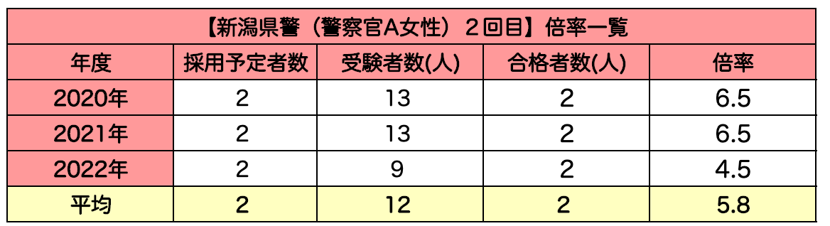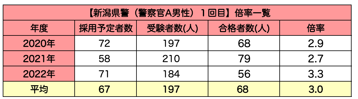 新潟県警の試験難易度について、『試験倍率』を元に解説していきます。