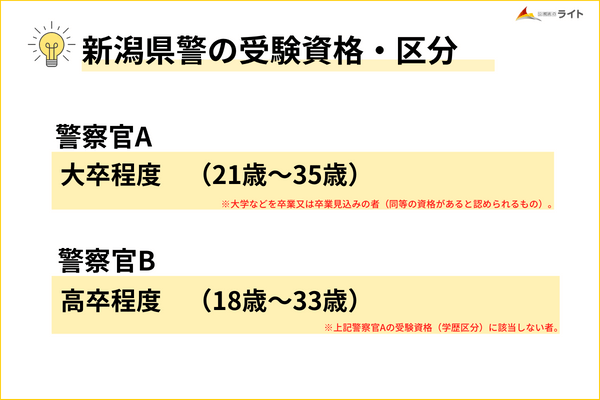 新潟県警の試験区分は警察官A・警察官Bに分かれています。