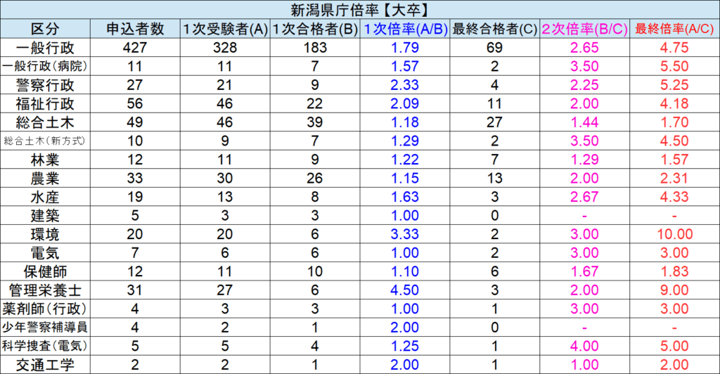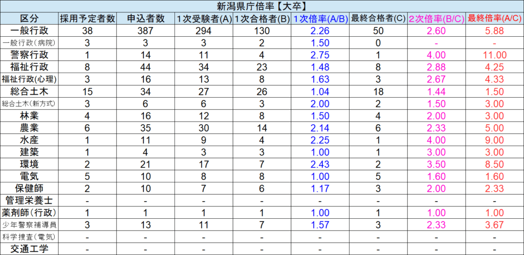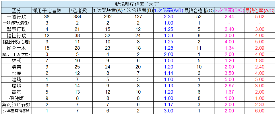 【新潟県庁】令和1年度倍率一覧