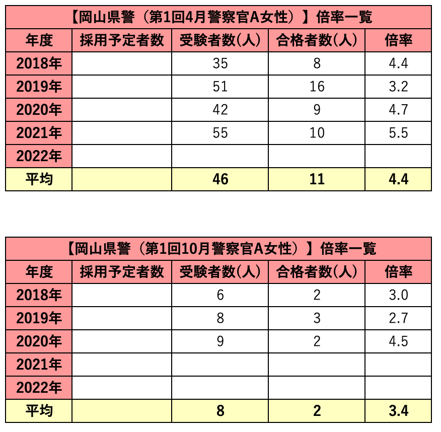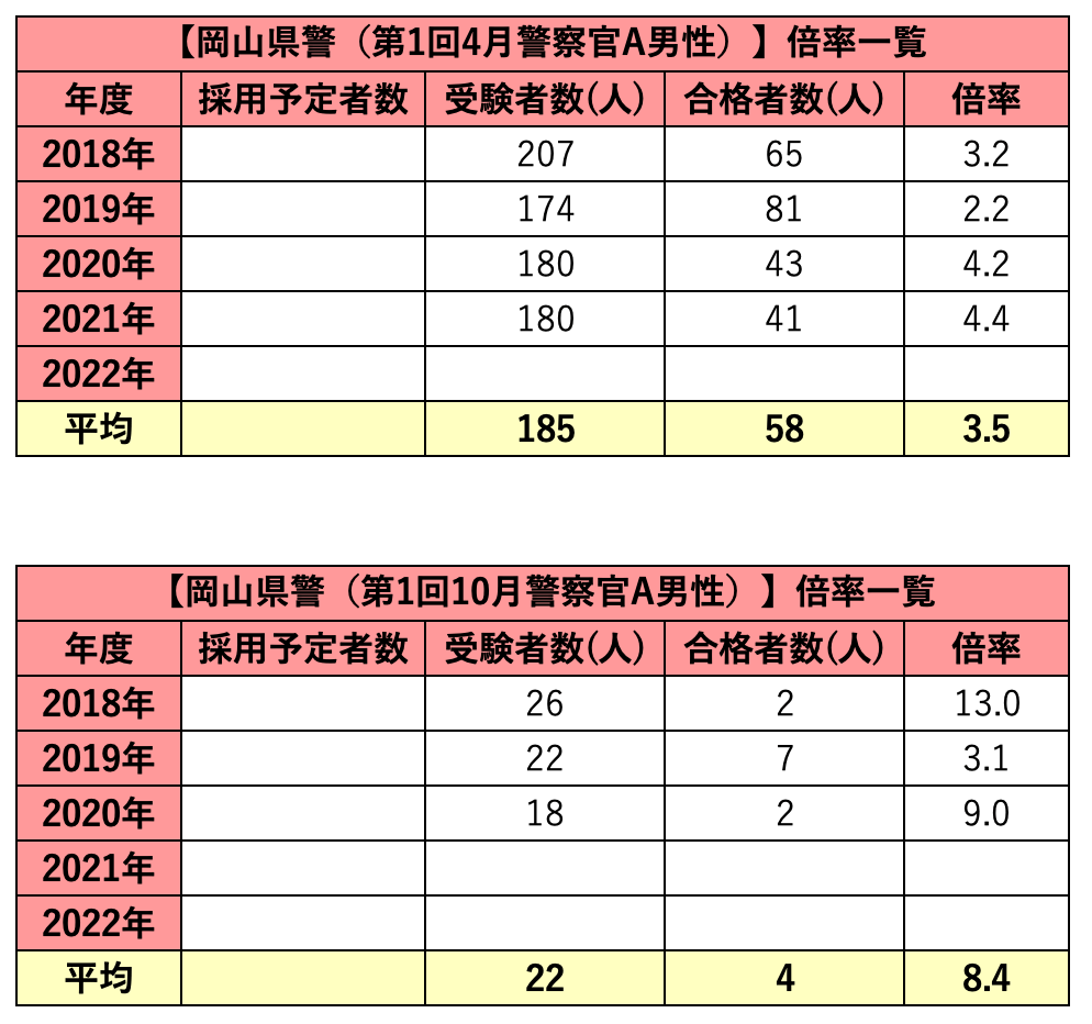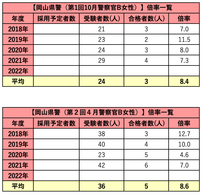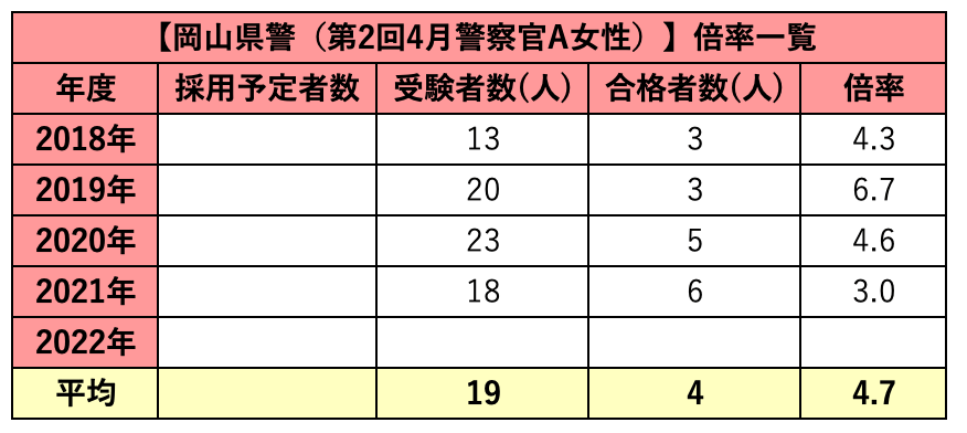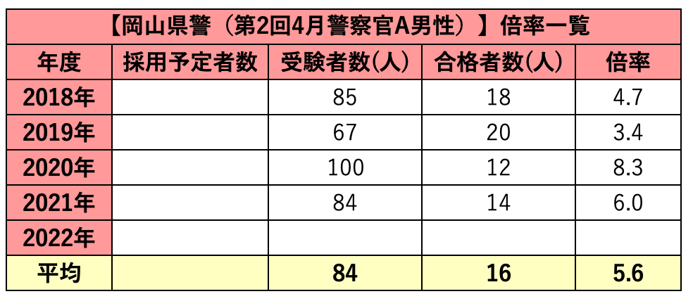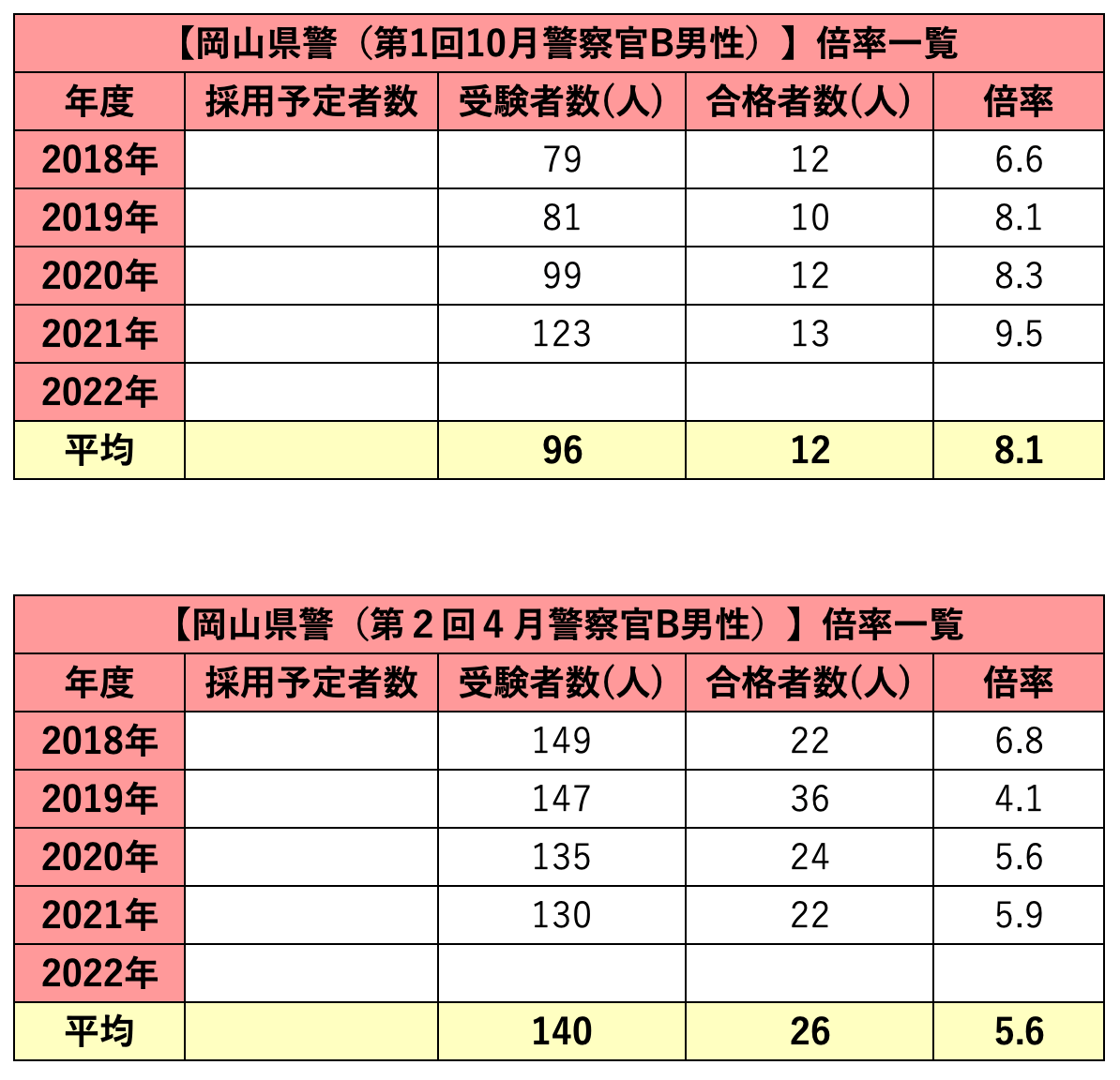 岡山県警の試験難易度について、『試験倍率』を元に解説していきます。