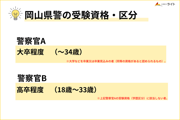 岡山県警の試験区分はA区分・B区分に分かれています。