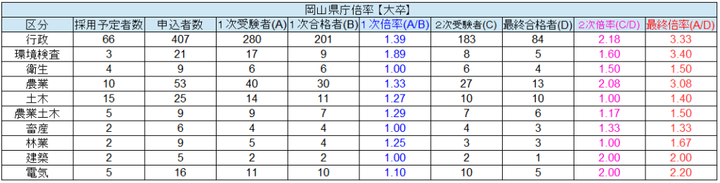 ※岡山県職員上級採用試験についての表が見えにくい人はPC表示を推奨します。