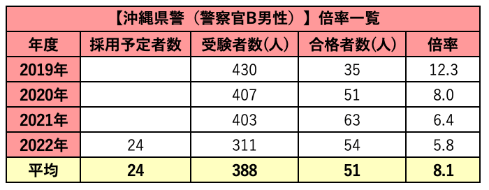沖縄県警の試験難易度について、『試験倍率』を元に解説していきます。