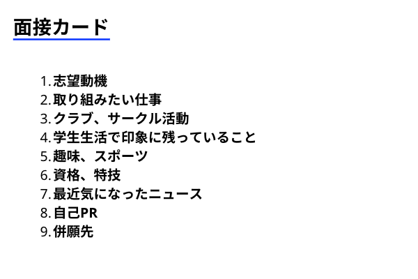 面接カードとは、面接の際に使用する簡単な質問シートのようなものです。