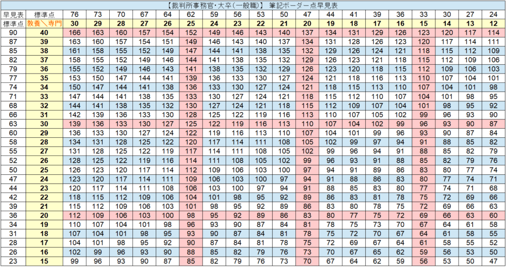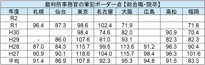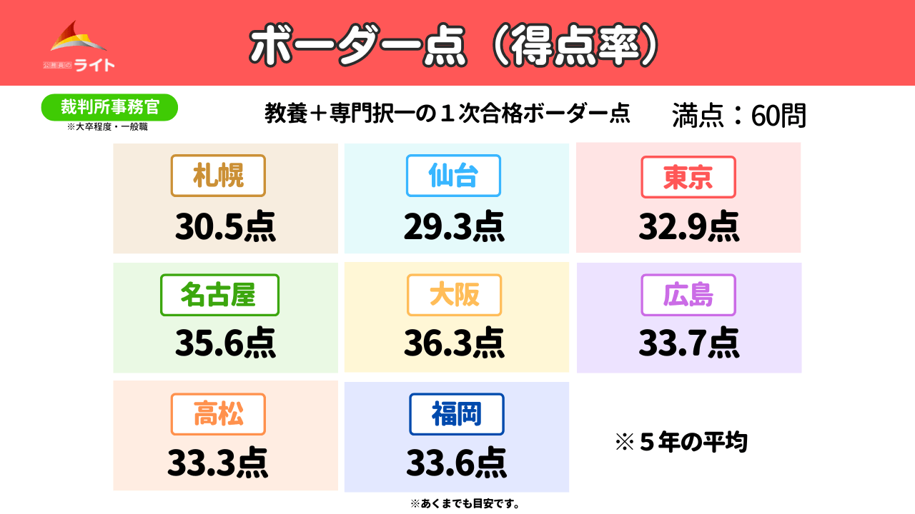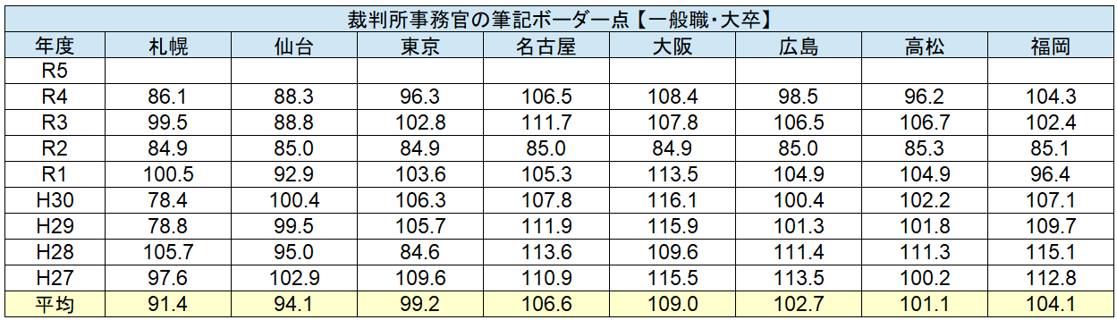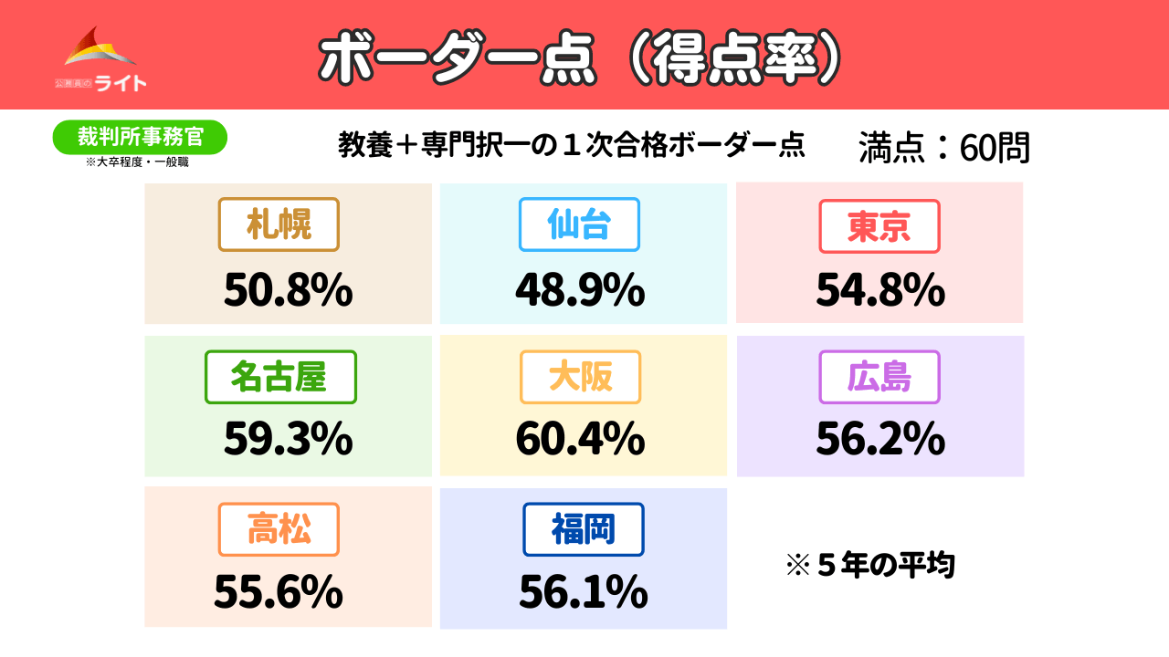 ※基本的には裁判所事務官一般職の大卒程度の試験のボーダーを中心に紹介していきたいと思っています。