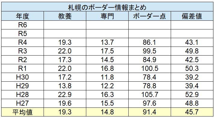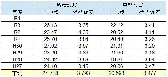 ⇒なので例えばH29年であれば、教養14,専門12、ココがボーダーだったということです。