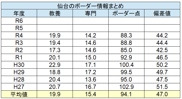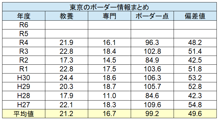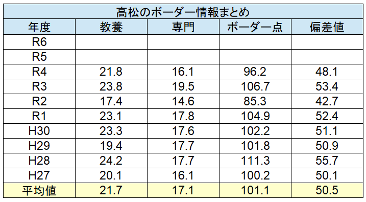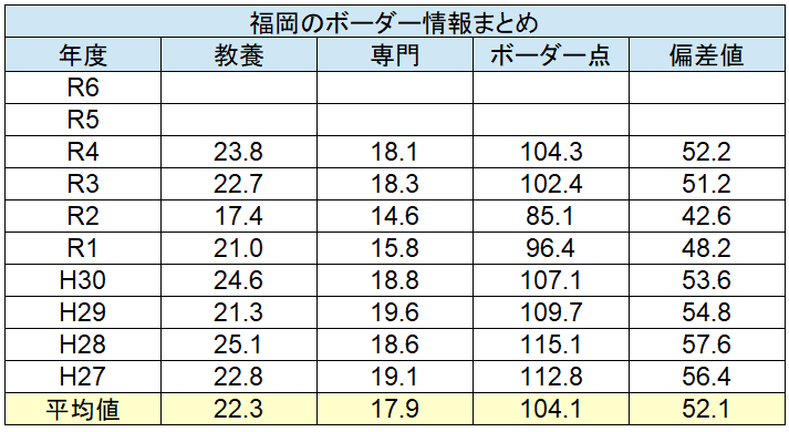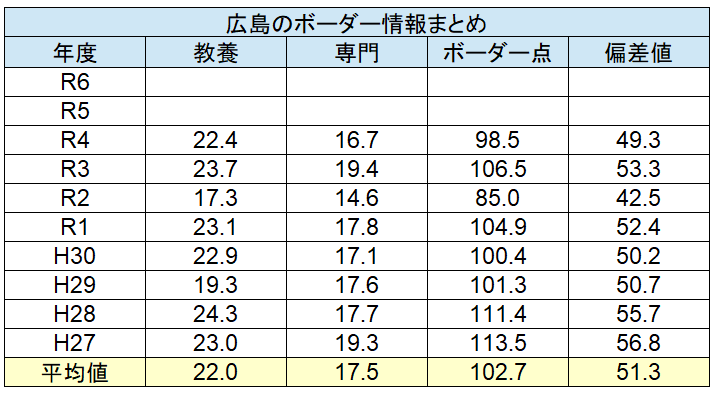 - R6.5.12:ここ5年間のボーダー点の平均値を更新