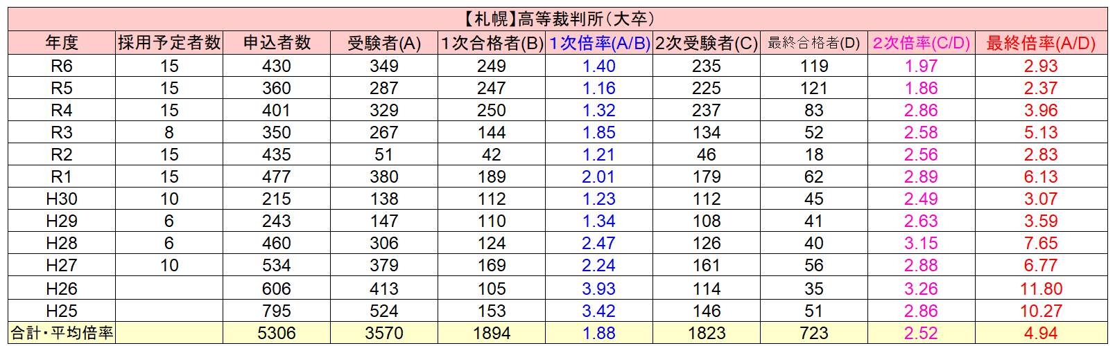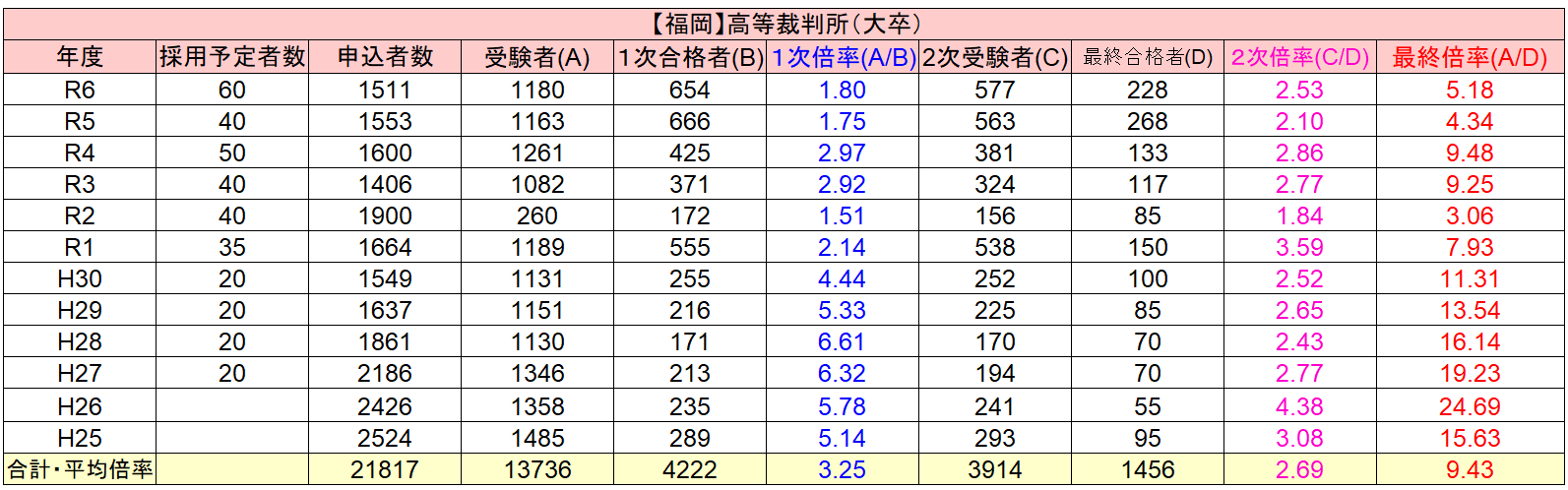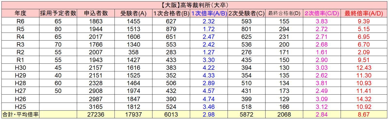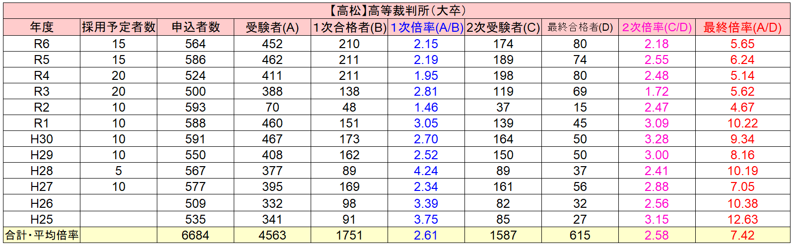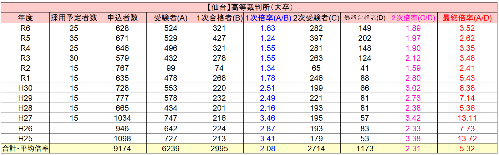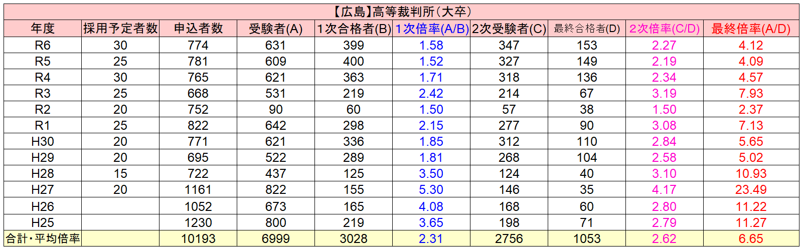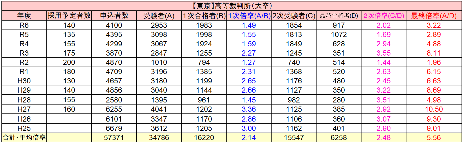 【裁判所事務官(大卒)】2次試験倍率まとめ