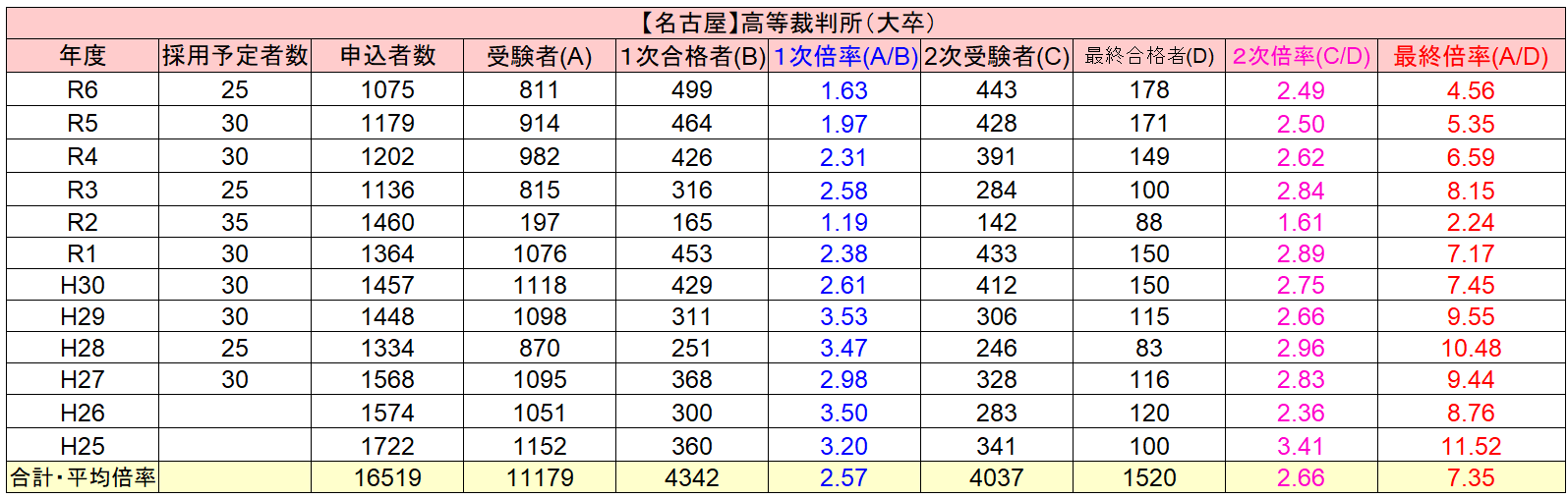【名古屋】高等裁判所(大卒)の筆記ボーダー点