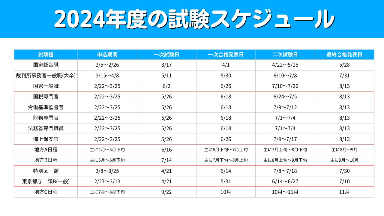 2025年度の公務員試験の日程を一覧で紹介しています。