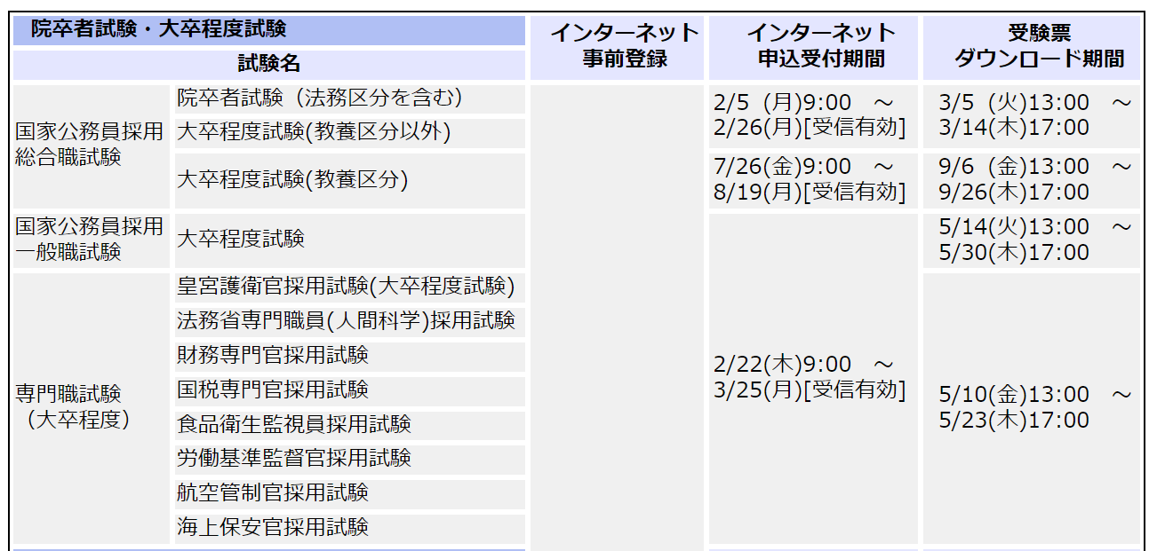 - 2025.2.20:R7年度の国家一般職の申込スタート