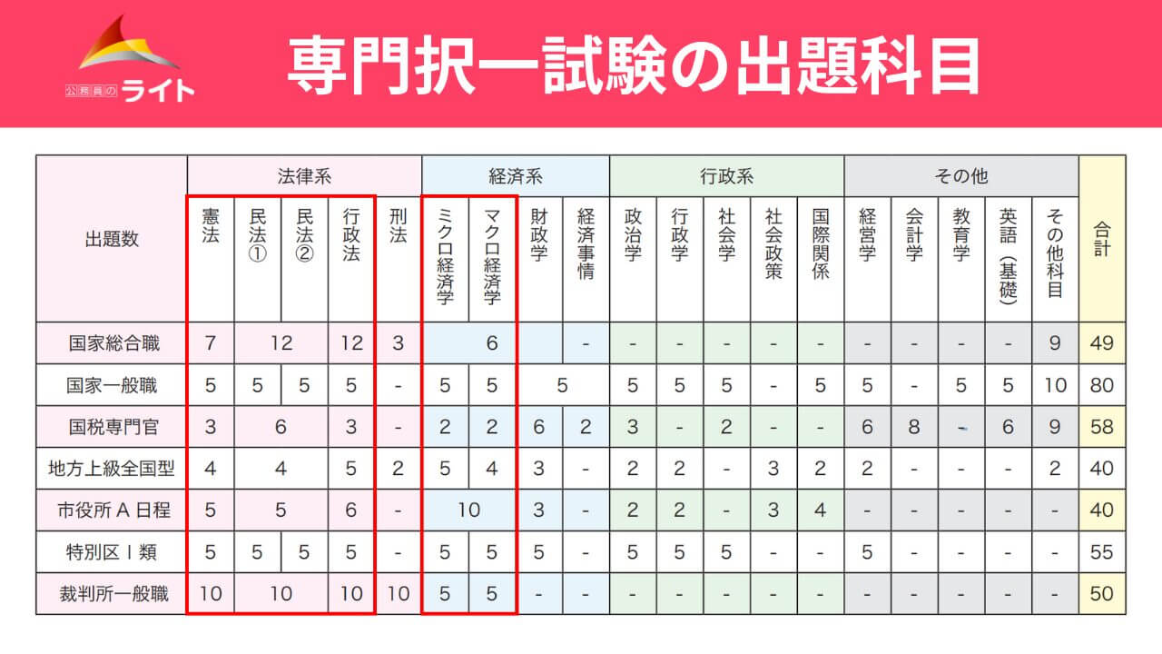 【行政系】出題科目一覧