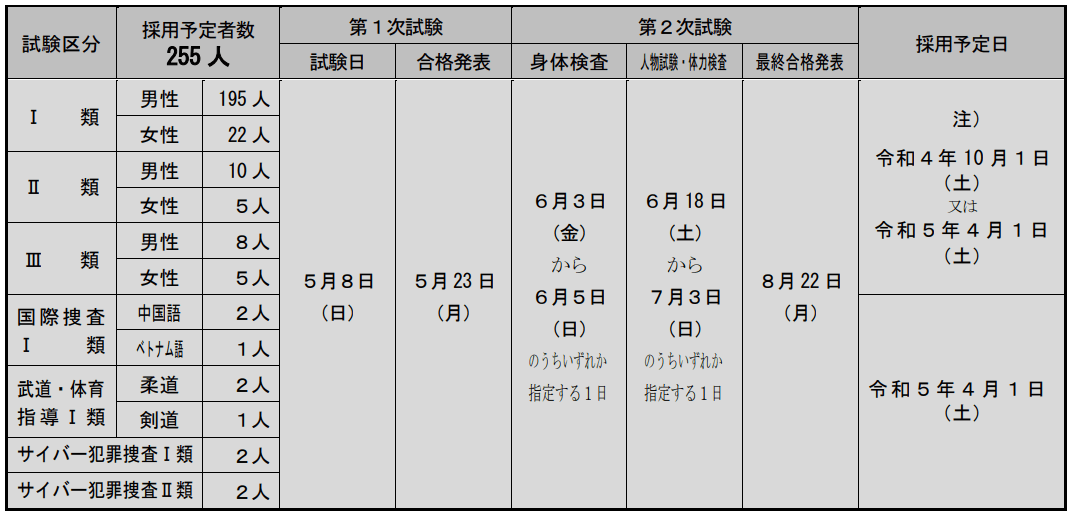 埼玉県警の採用試験は、Ⅰ類・Ⅱ類・Ⅲ類とつの試験区分があります。