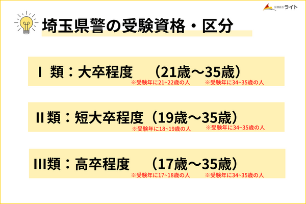埼玉県警の試験区分Ⅰ類・Ⅱ類・Ⅲ類に分かれています。