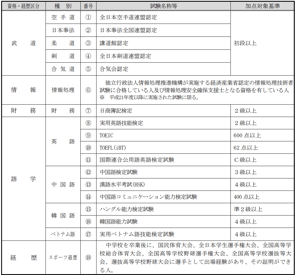 埼玉県警の試験は、取得した資格について加点があるものがあります。