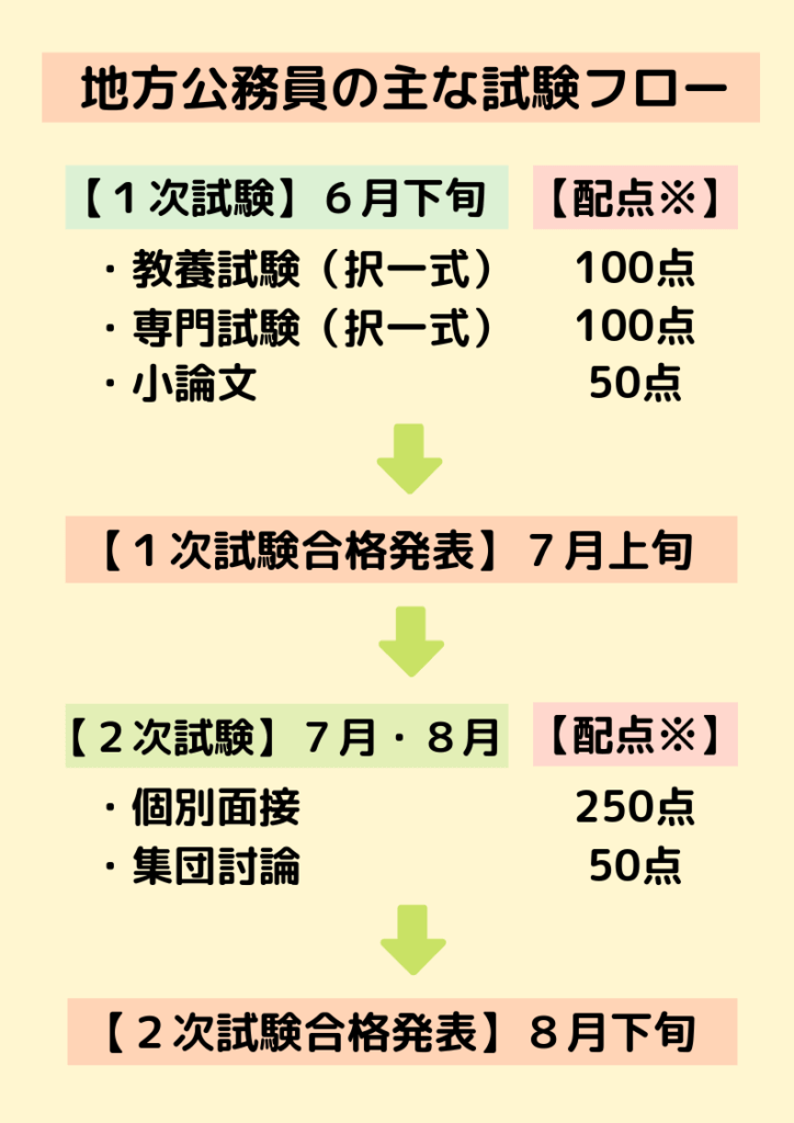 地方上級の試験は、各自治体ごとに試験科目や日程、選考方法等が全然違います!