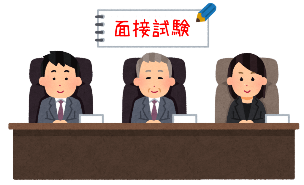 面接は面接官3人でした。初日は2回面接が行われましたが、どちらの面接も面接カードの内容を中心に聞かれました。