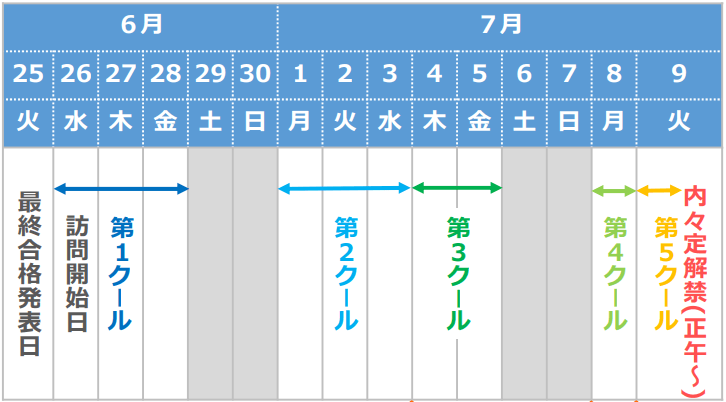 こちらは7月採用ver(既卒者向け)の官庁訪問スケジュールです。