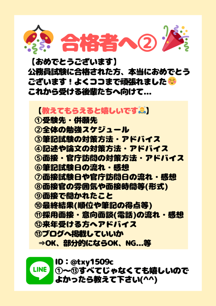 【公務員試験合格者からのアドバイス】ご協力お願いします(^^)