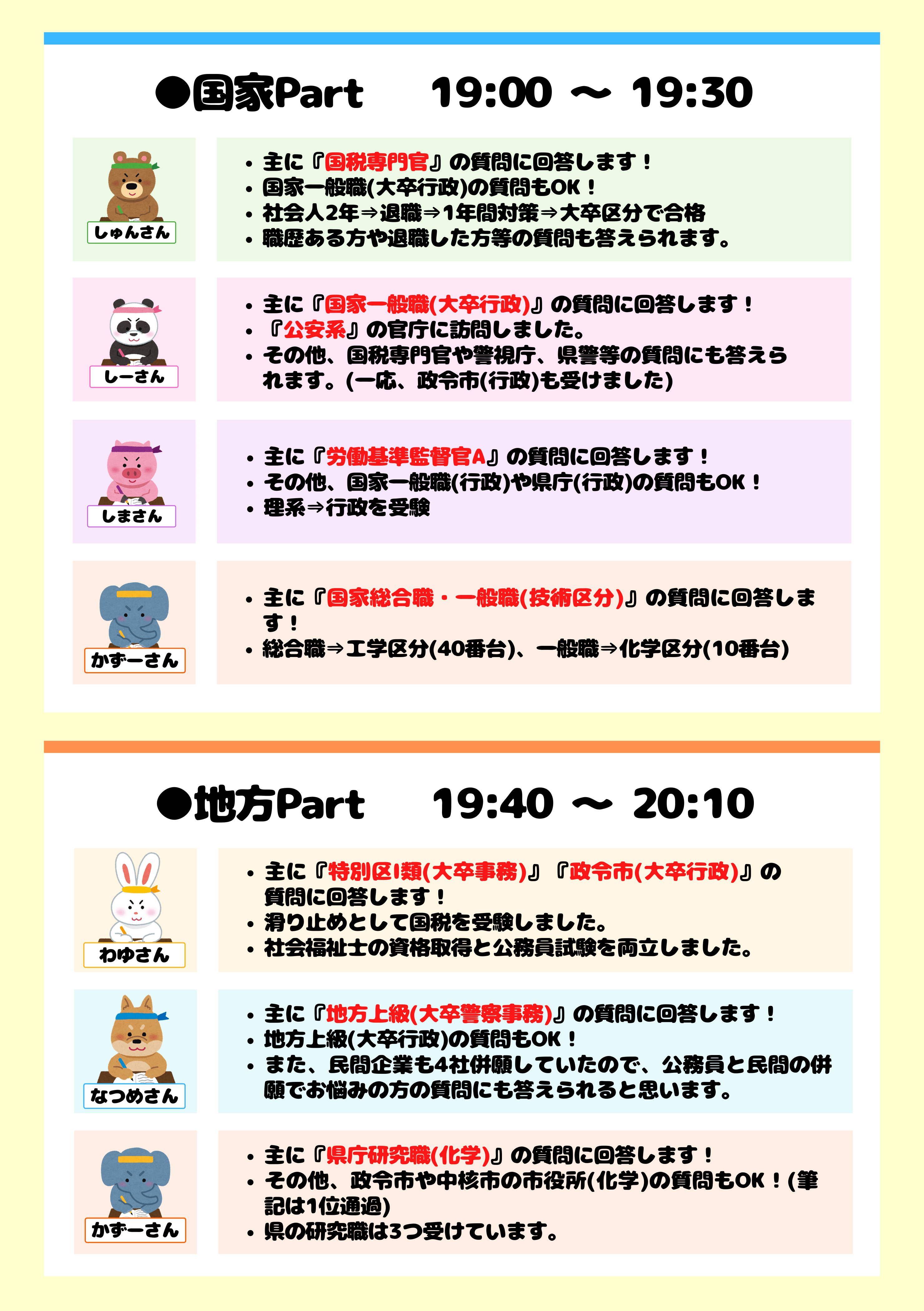 • また、民間企業も4社併願していたので、公務員と民間の併願でお悩みの方の質問にも答えられると思います。
