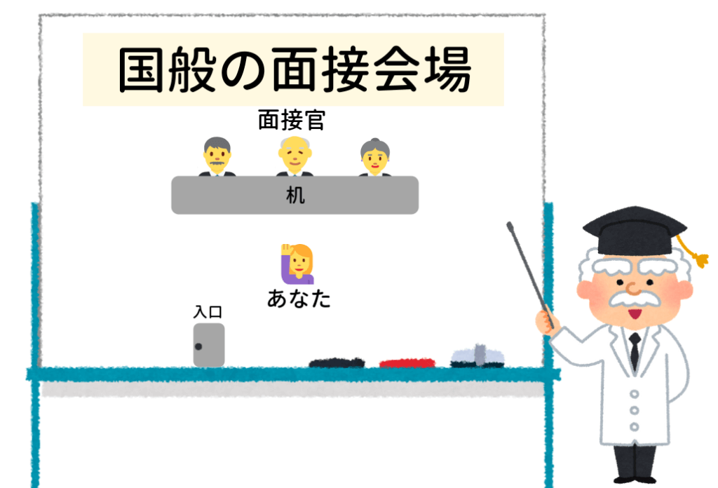 流れとしては、1番、2番の2人が面接室に移動し、1番の方が面接をし、2番の方は外で待機する。