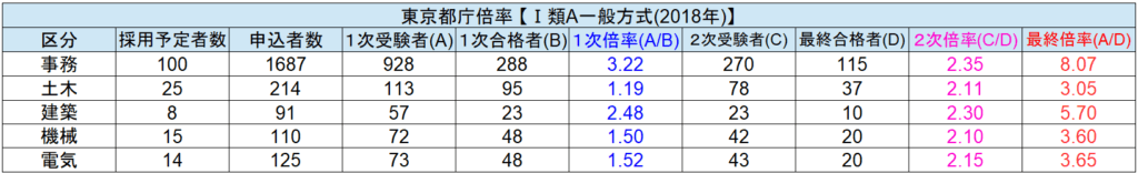 近年の東京都庁Ⅰ類A試験の倍率をまとめました。