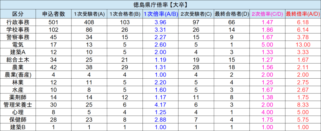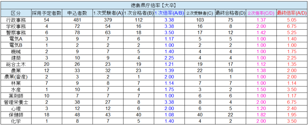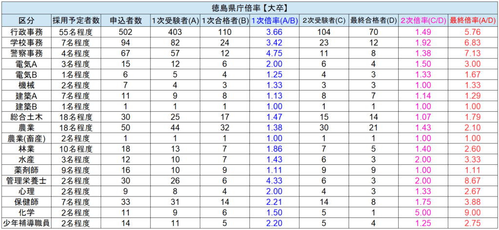 ※徳島県職員上級採用試験についての表が見えにくい人はPC表示を推奨します。