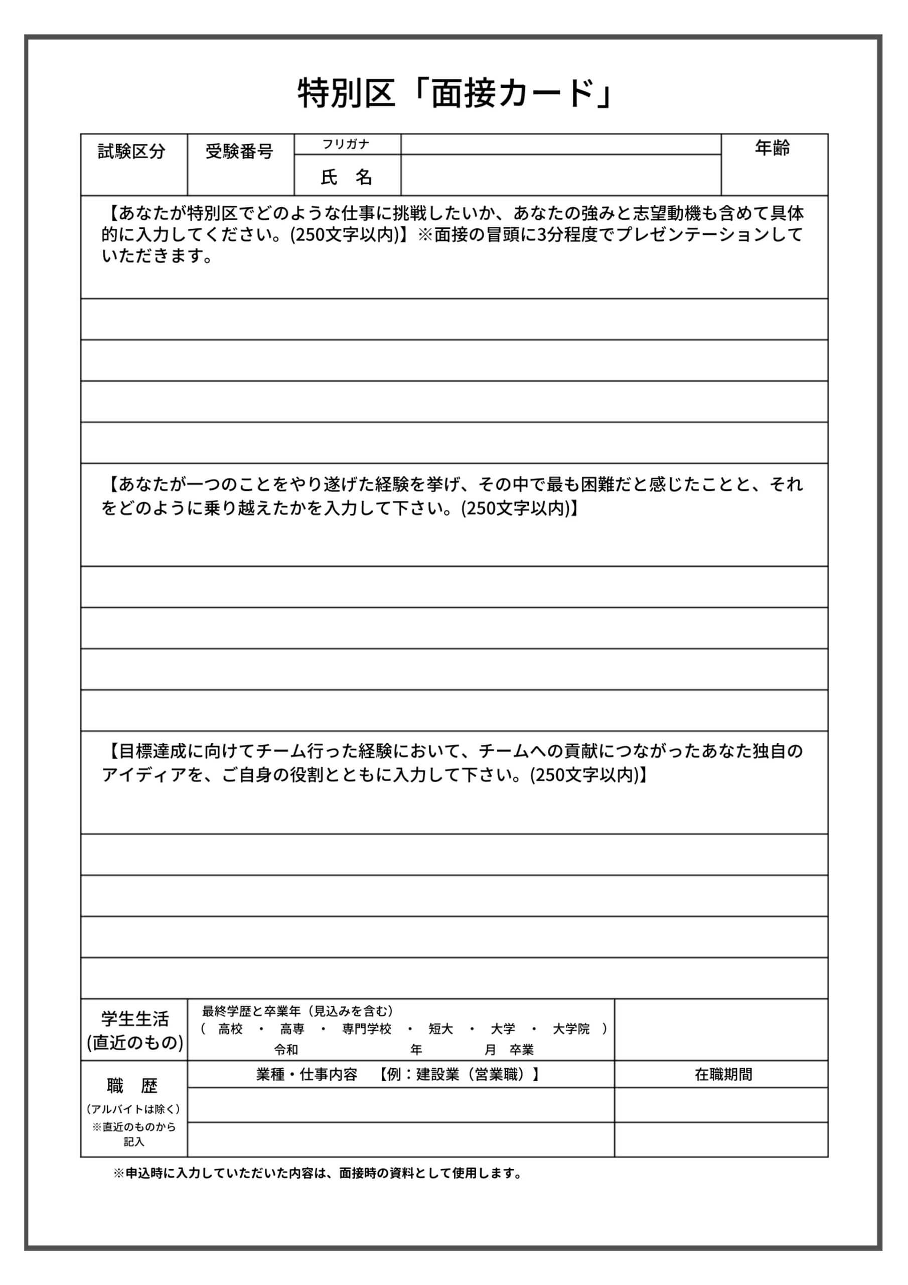特別区でも基本的にはこの面接カードに書いた内容について色々突っ込んでくる形になります。