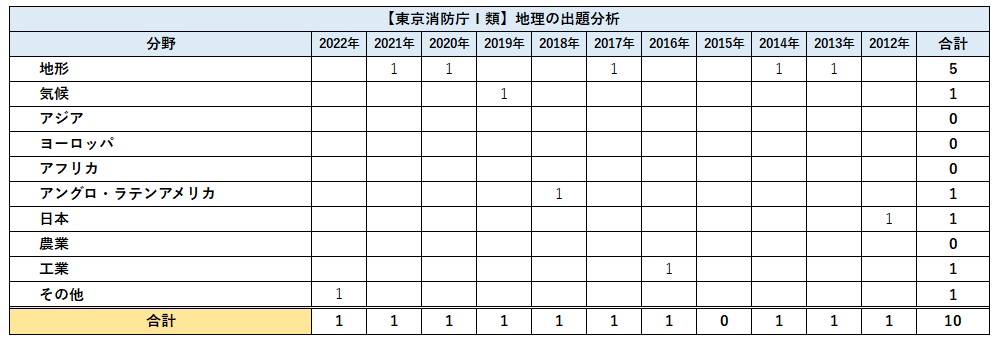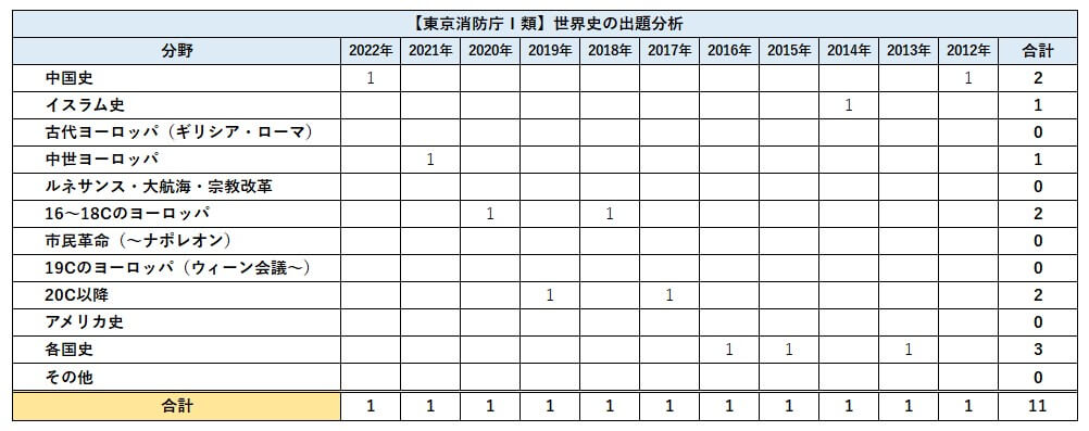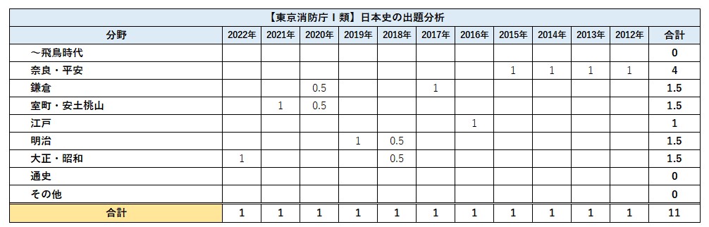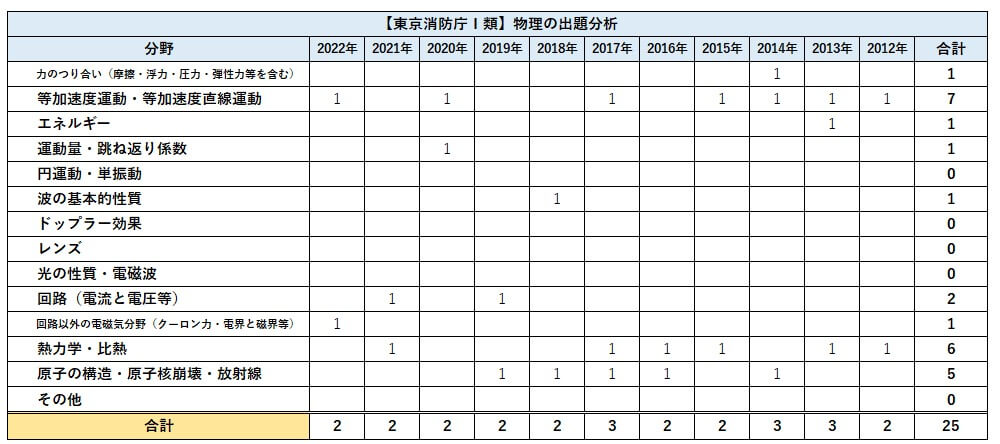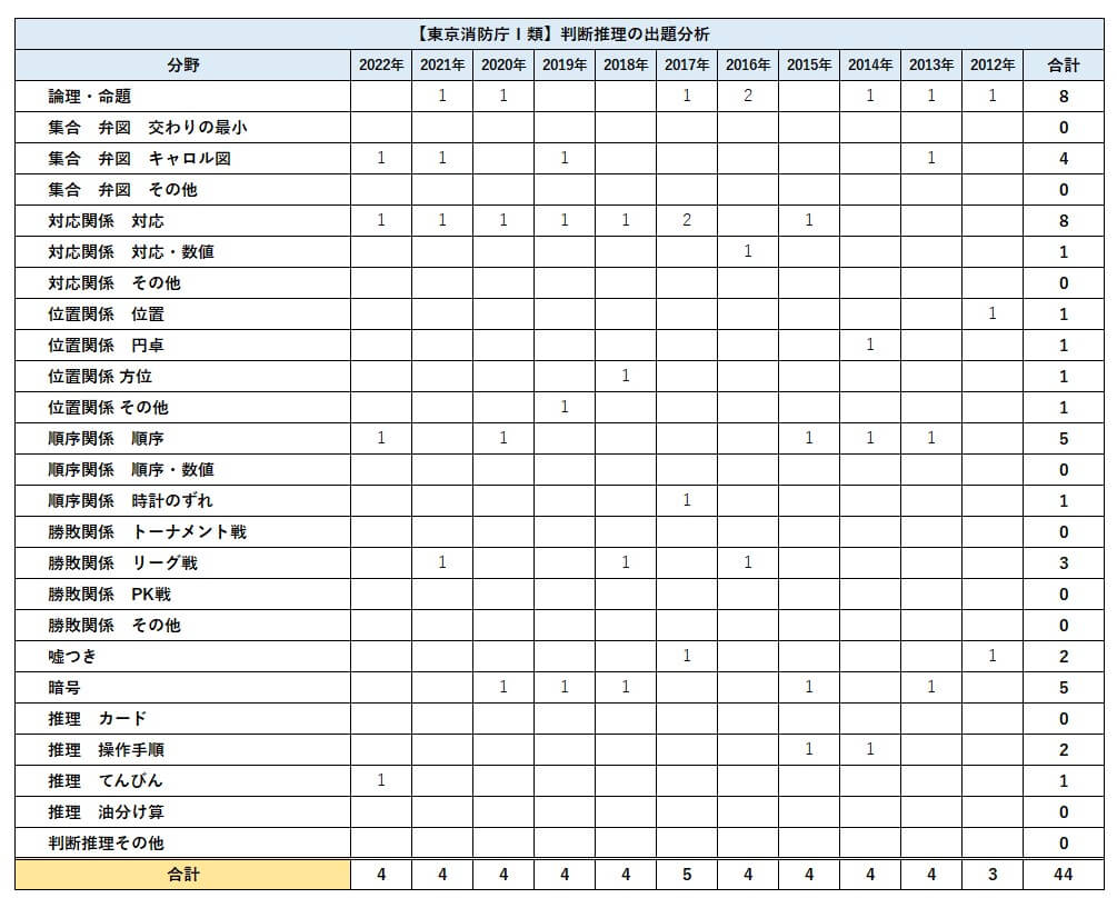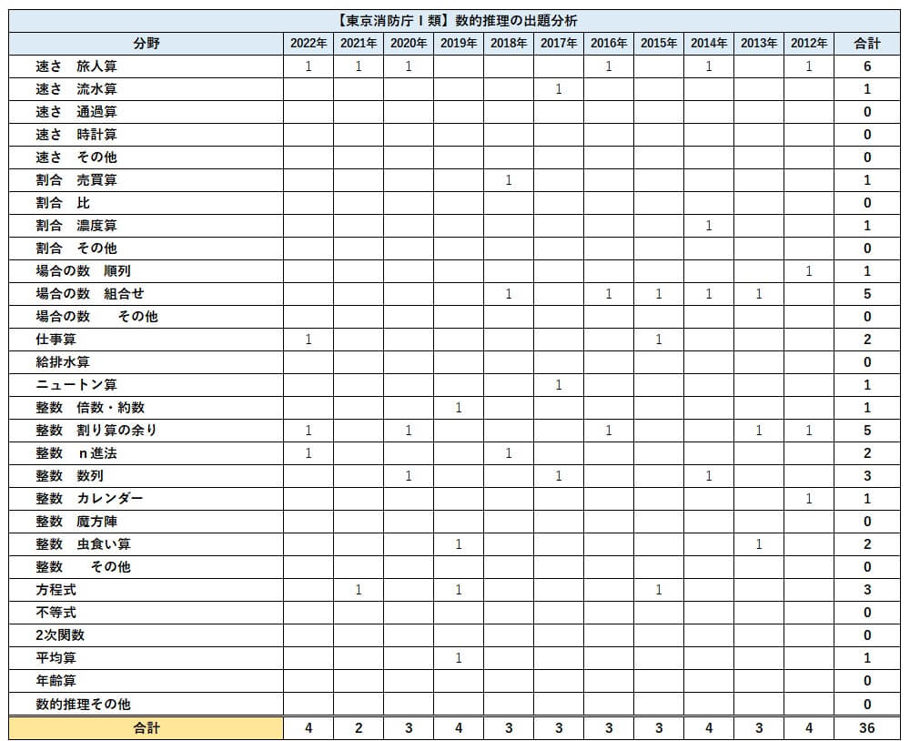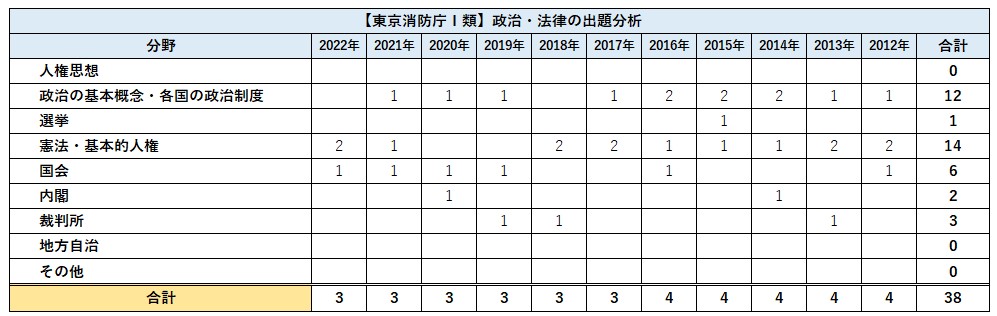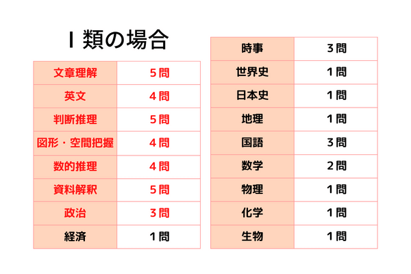 東京消防庁の教養試験の出題内訳:Ⅰ類
