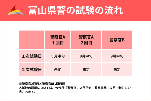 富山県警の採用試験は、警察官Aと警察官Bのつの試験区分があります。