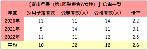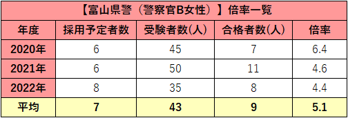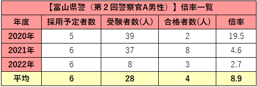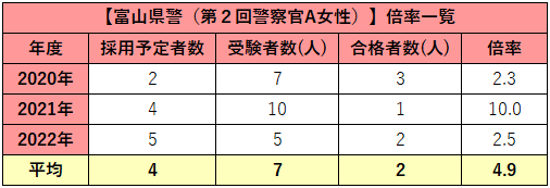 このように富山県警の採用試験の倍率低下傾向にあります!