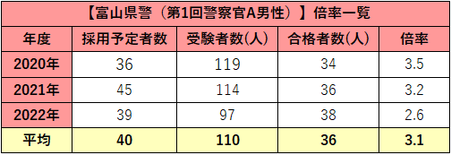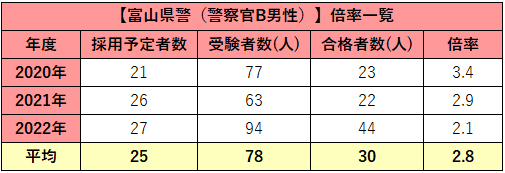 富山県警の試験難易度について、『試験倍率』を元に解説していきます。