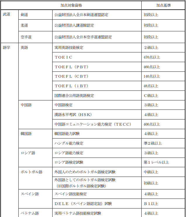語学の資格や、武道、簿記の資格がありますので確認していきましょう!