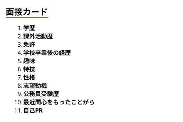 面接カードとは、面接の際に使用する簡単な質問シートのようなものです。