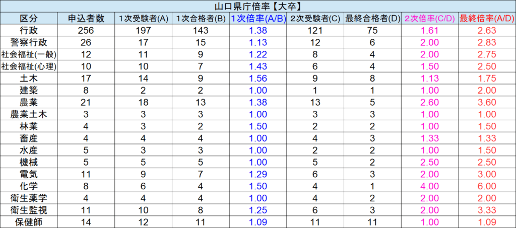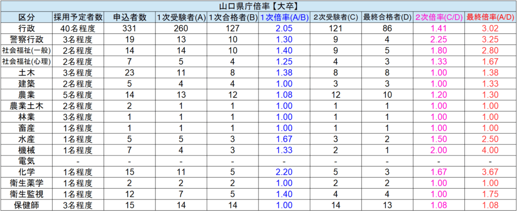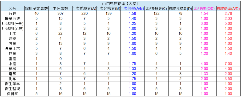 ※山口県職員上級採用試験についての表が見えにくい人はPC表示を推奨します。