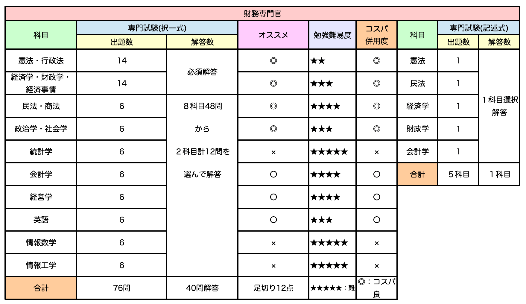※オススメは「◎、〇、△、✕」の4段階、勉強難易度は「★」の5段階です。