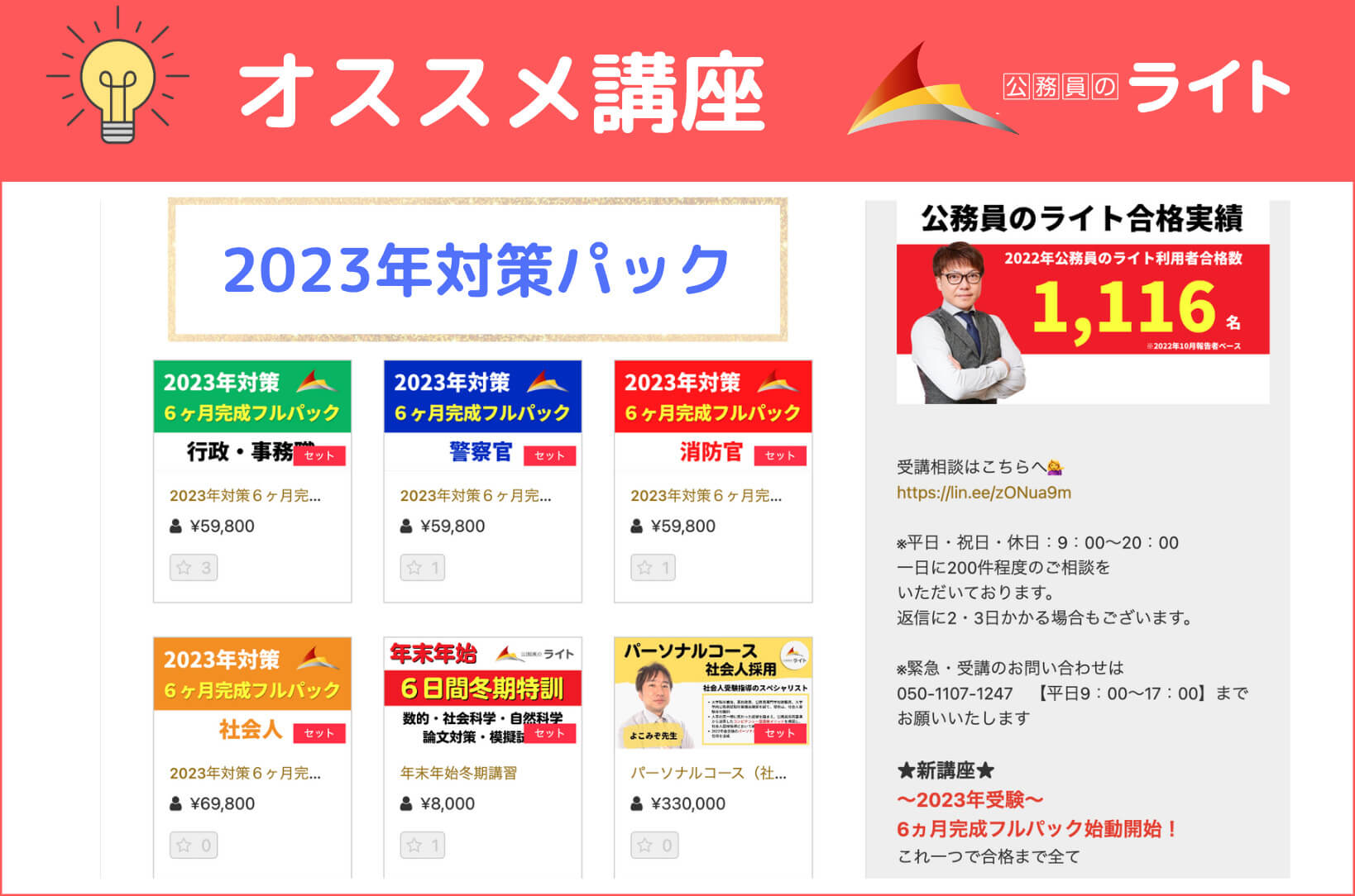 講座に関する疑問や質問があれば、公務員のライトの受講相談ラインでお気軽にご相談ください😊