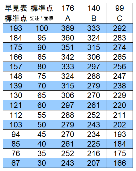 なお、合格通知に記載の「合格点」から、「筆記の標準点↑」を引き算することで、専門記述と面接の評価が分かることになります。