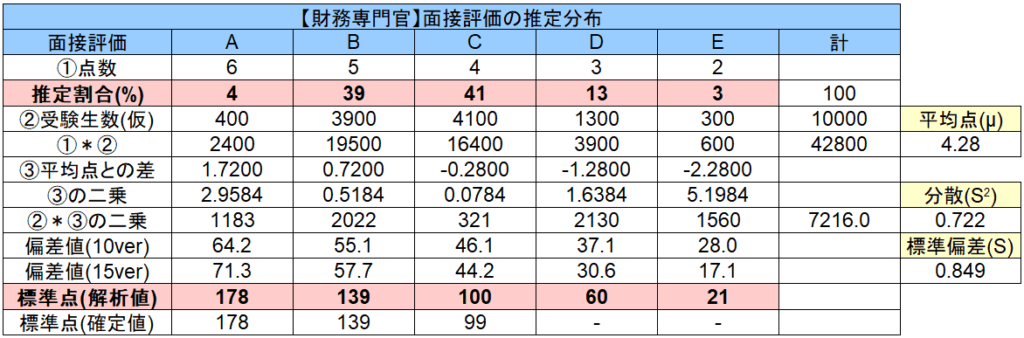 大体これくらいで推移すると思ってください。【財務専門官】面接評価の推定割合(D・Eが足切り)