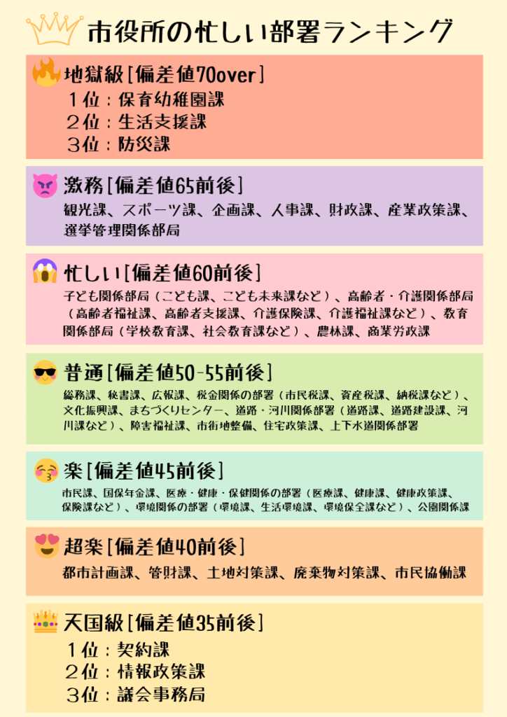 私の予想や憶測で市役所の忙しい部署ランキング等つけているわけではありません。