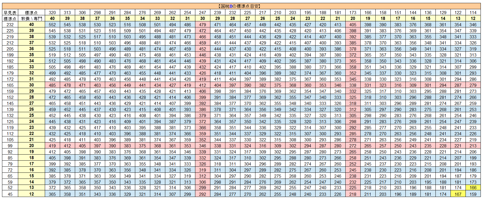 国税専門官等の試験では、自分の素点を標準点(偏差値)に換算して、その得点でボーダーを超えているかどうか判断します。