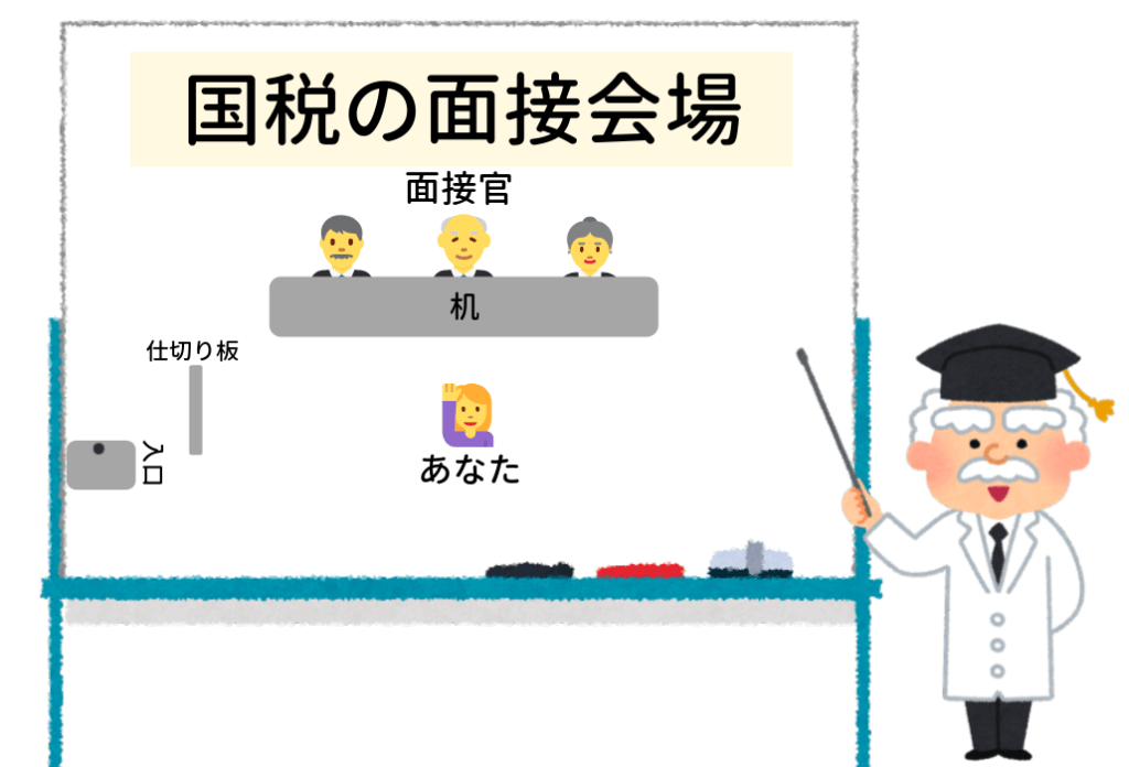 私は国税の面接が初めてで、大部屋で待機してるときはあまり緊張してなかったのですが、自分の番が近づいてくると緊張してきました。